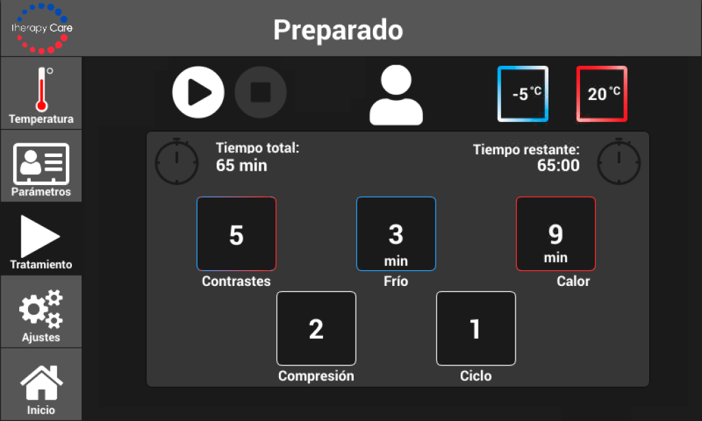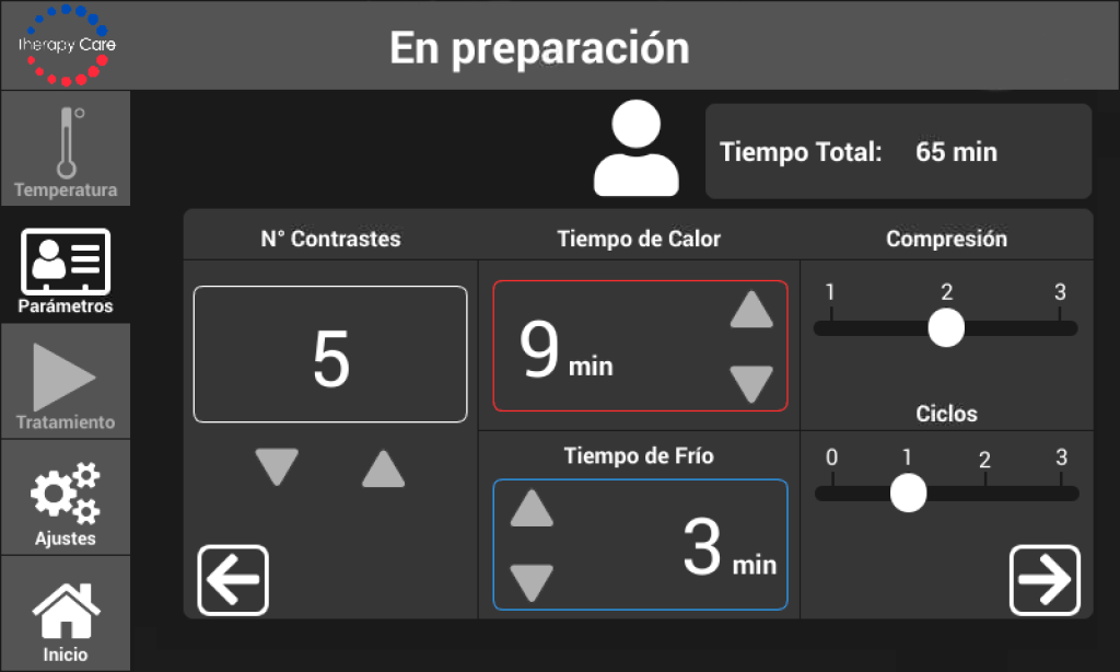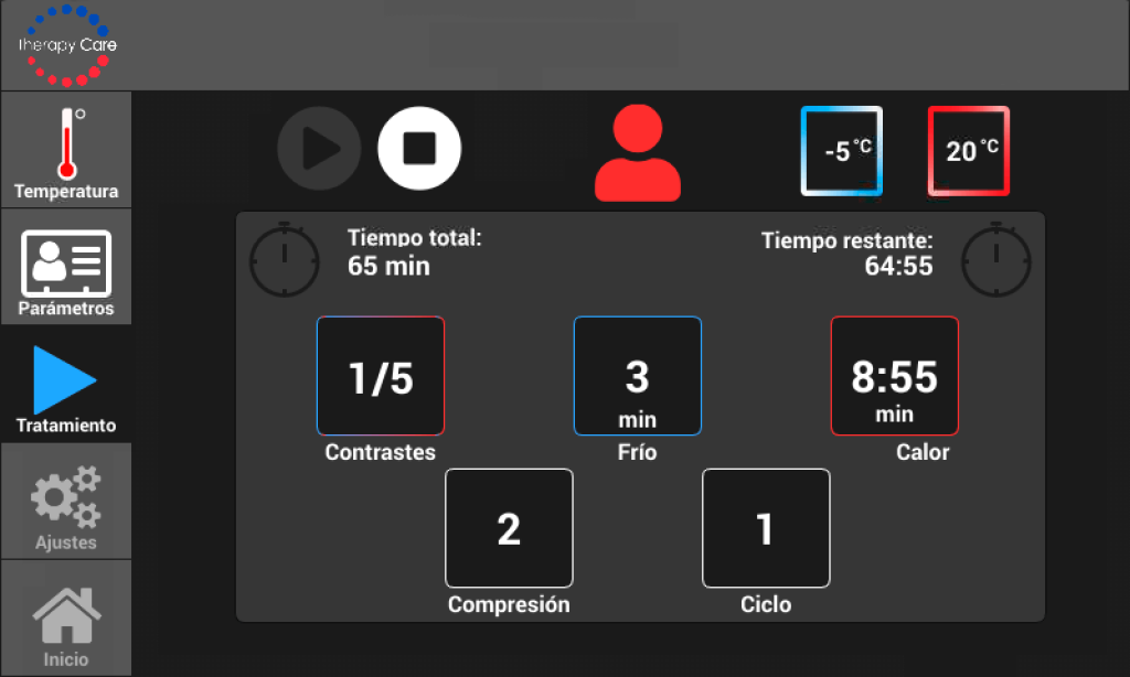 El sistema permite un control preciso de los parámetros clave durante todo el proceso. Ofrece la posibilidad de monitorear y ajustar los tiempos, los rangos de temperatura y los niveles de compresión, garantizando una aplicación segura, personalizada y eficaz según las necesidades de cada usuario.